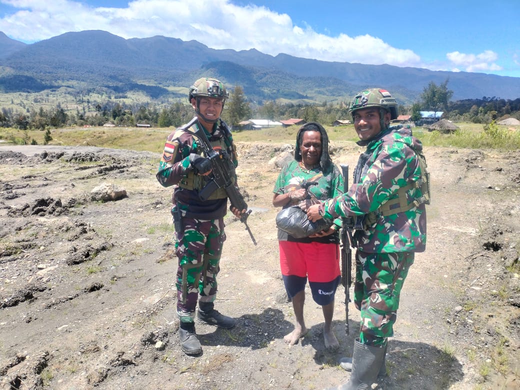 [ ILAGA ] Indonewsone.com – Satgas Yonif 323 Buaya Putih, melakukan aksi sosial dengan membagikan sembako ke warga Kampung Kago, Distrik Ilaga, Kabupaten Puncak, Papua Tengah, Selasa (05/11/2024)