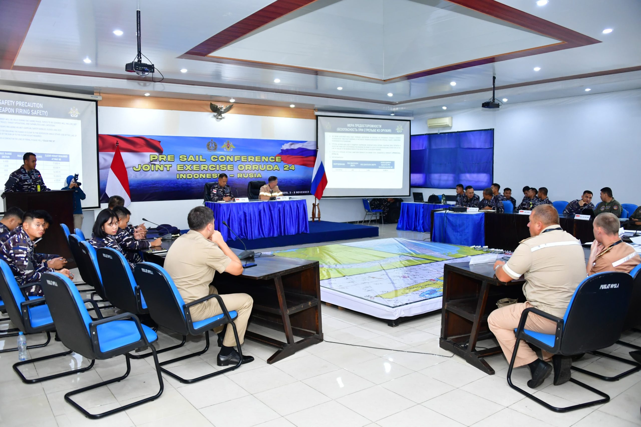 [ JAKARTA ] Indonewsone.com– Menjelang tahap sea phase Latihan Bersama (Latma) ORRUDA 24, Prajurit TNI AL dan Russian Navy (RN) menggelar Pre Sail Brief di Ruang TFG Puslatkaprang, Kolat Koarmada ll, Rabu (6/11/2024).