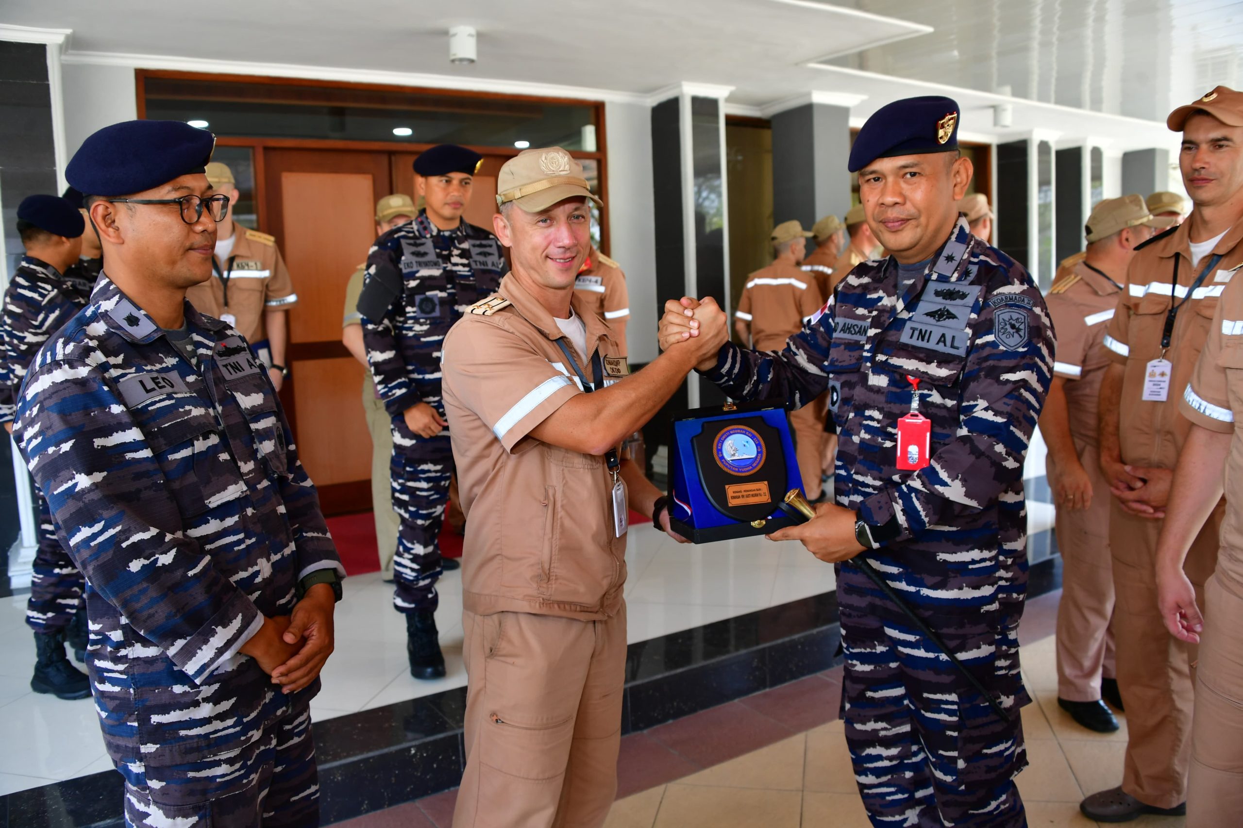 Selesai melaksanakan Pre Sail Brief, kegiatan dilanjutkan dengan penyamaan persepsi dan konsep latihan terakhir antara unsur kapal, heli maupun tim boarding. Kegiatan diakhiri dengan penyerahan cinderamata dan foto bersama.