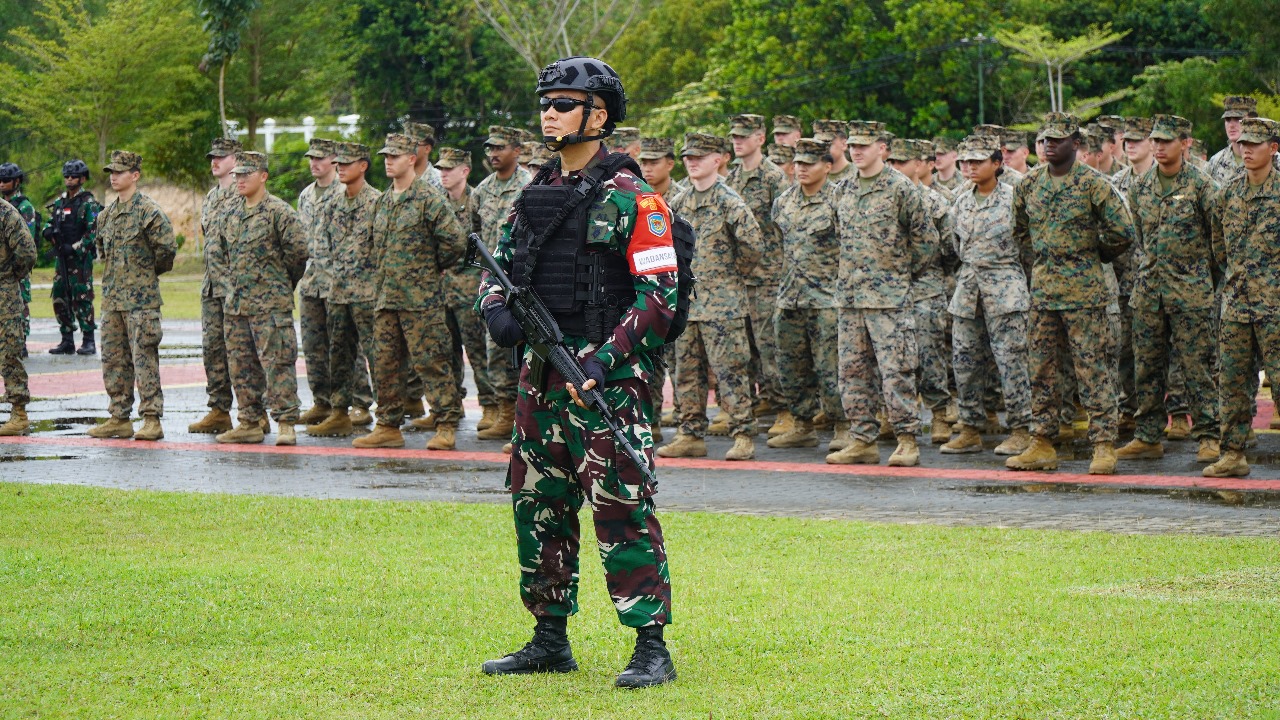 BATAM, Indonewsone.com– TNI-AL Dispen Kormar, Batam (Brigif 4 MAR/BS). Latihan bersama Prajurit Petarung Malaka dengan United States Marines Corp dalam Latma Keris Marex TA. 2024 resmi dibuka di Ksatrian Yonif 10 Mar/SBY. Setokok, Batam, Rabu (06/11/2024).