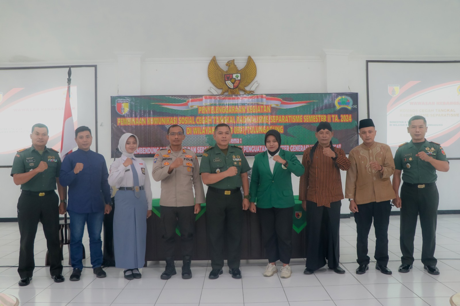 Tulungagung, Indonewsone.com– Dalam upaya memperkuat ketahanan wilayah serta mencegah ancaman radikalisme dan separatisme, Kodim 0807 Tulungagung menggelar kegiatan Pembinaan Komunikasi Sosial Cegah Tangkal Radikalisme/Separatisme dengan tema “Membendung Radikalisme dan Separatisme Melalui Penguatan Karakter Generasi Muda Bangsa” di Aula Pandu Sakti Kodim 0807 Tulungagung Jl. Jaksa Agung Suprapto No 17 Kelurahan Kampungdalem Kecamatan Tulungagung Kabupaten Tulungagung Jawa Timur, Kamis (07/11/2024).